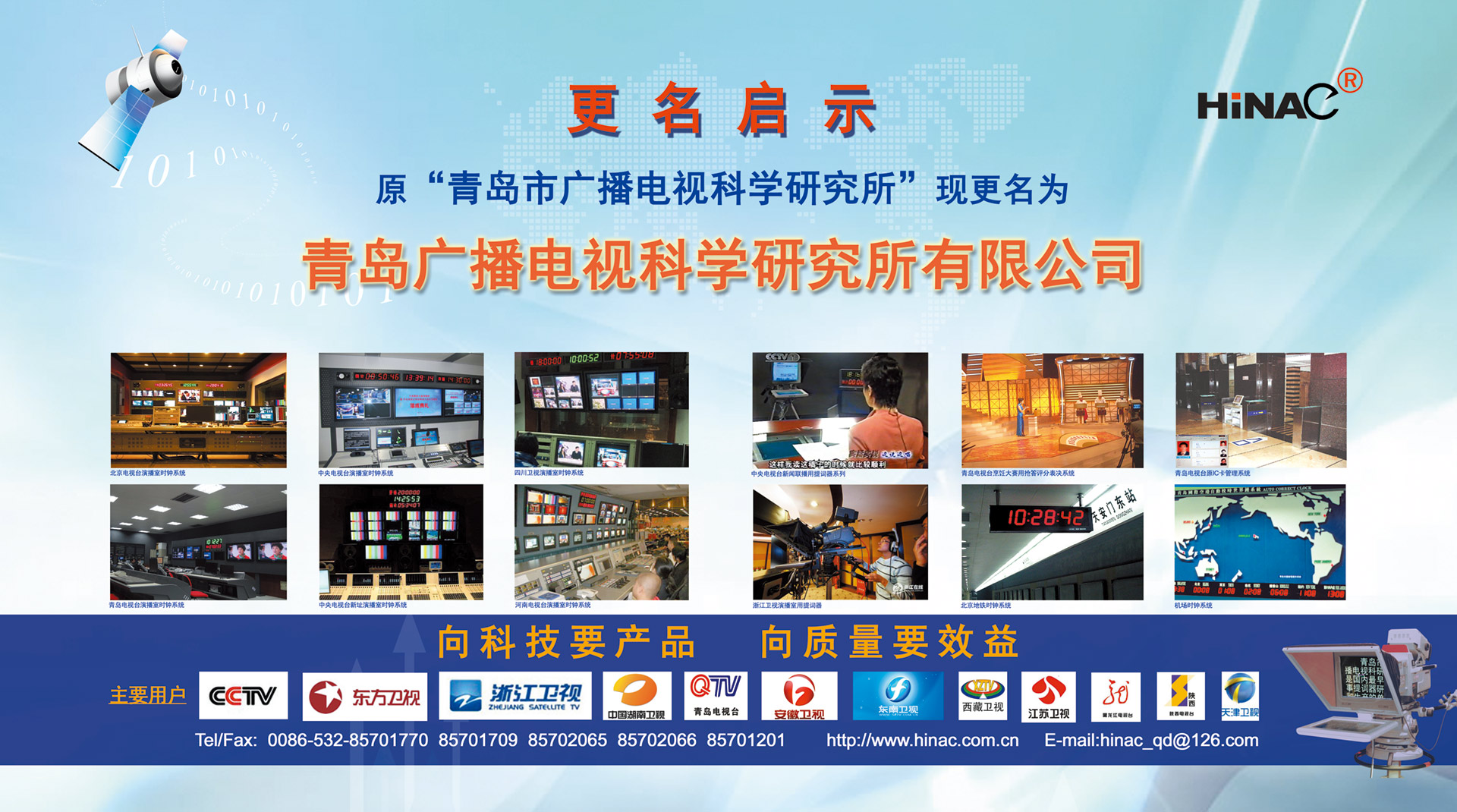 25年不悔的執(zhí)著追求! 25年不懈的專業(yè)堅持! 青島廣播電視科學研究所有限公司(簡稱青島廣電所)以其對廣電科技事業(yè)無限的熱愛,以及為爭做中國最優(yōu)秀廣電產(chǎn)品供應商的美好理想,25年如一日,深耕廣電設備這塊沃土,已經(jīng)形成且被市場高度認可的成果有: TVZ系列GPS/北斗自動校時鐘系統(tǒng) TC系列電視播音提詞器及電視直播系統(tǒng)整體解決方案 TL系列泰麗訊源指示系統(tǒng) QD系列搶答表決評分系統(tǒng) IC系列廣電一卡通管理系統(tǒng) 同時向:廣電設備集成商、地鐵輕軌信號系統(tǒng)設備供應商及其它業(yè)務方向創(chuàng)新、拓展、前行! 青島廣電所在國家廣電傳媒事業(yè)不斷發(fā)展的今天,愿意和您攜手并進,為我們共同的事業(yè)發(fā)展添磚加瓦開拓創(chuàng)新。愿意和您一道,把工作中的一個奇思妙想轉變?yōu)橐豁梻?..
